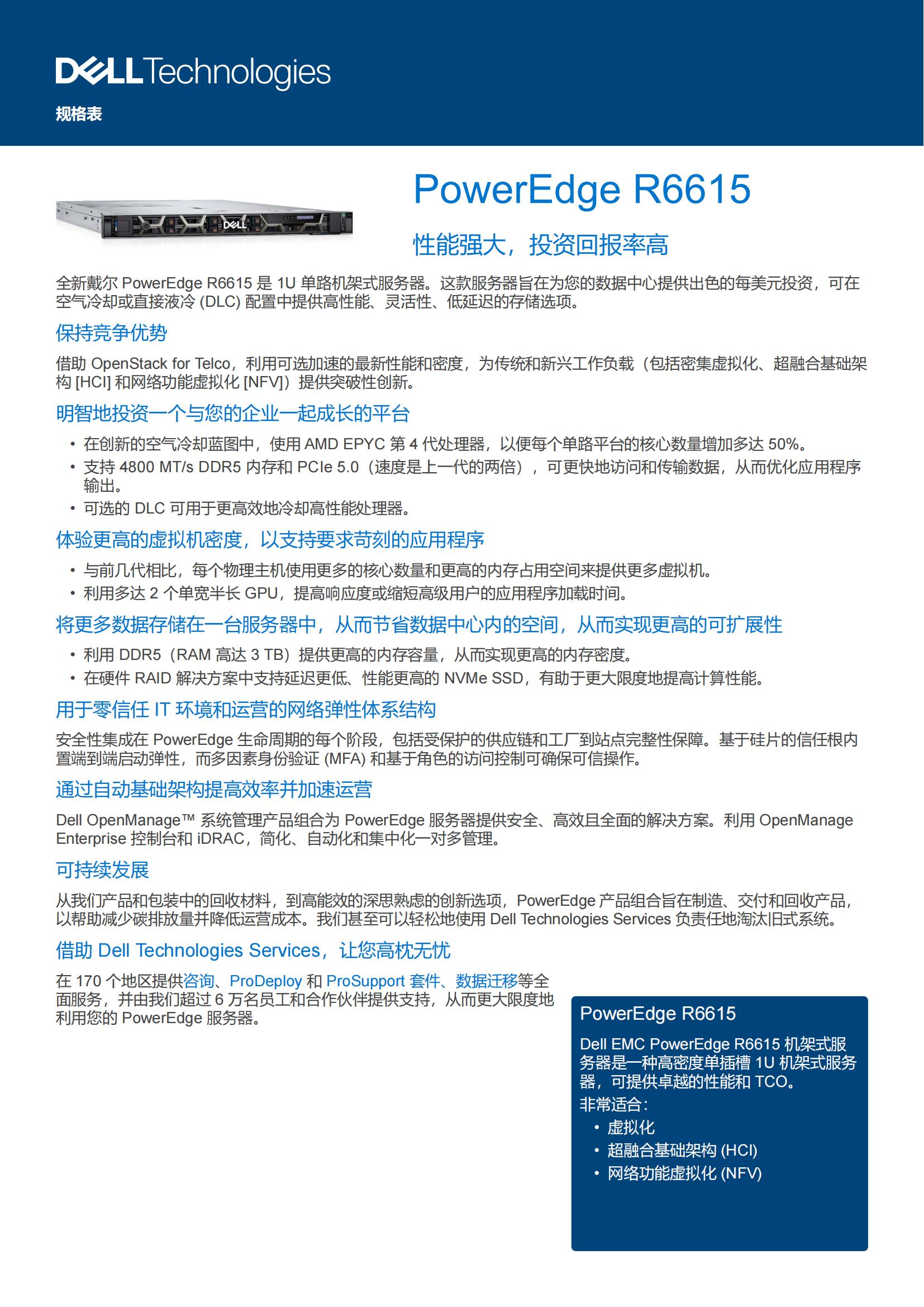 • 利用多达 2 个单宽半长 GPU,提高响应度或缩短高级用户的应用程序加载时间。将更多数据存储在一台服务器中,从而节省数据中心内的空间,从而实现更高的可扩展性