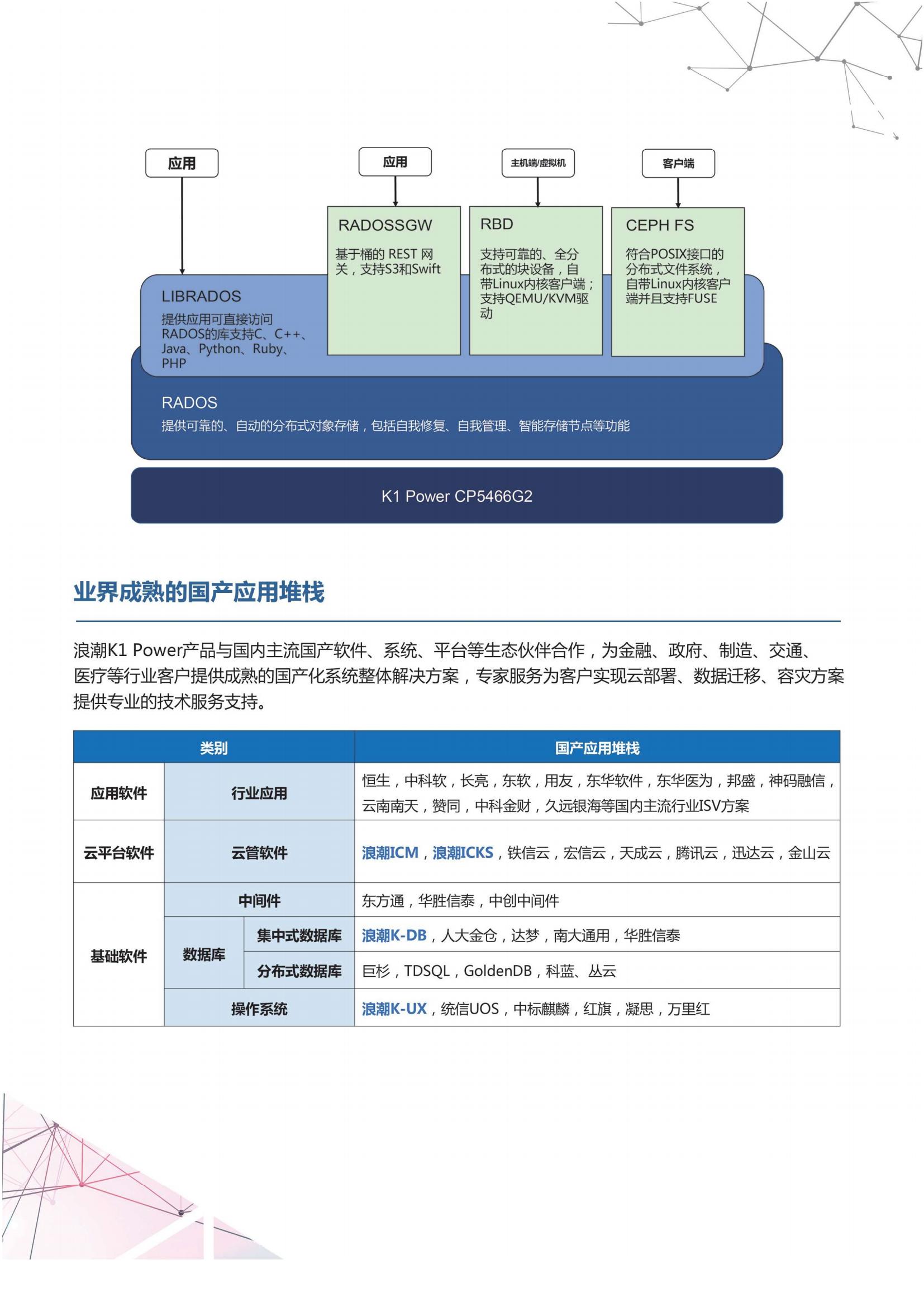 4. 所采用的处理器为国产合芯HP-C1000处理器,得益于其高主频、高线程、高缓存等特性,浪潮K1Power CP5466G2在能较少的存储节点实现超高的IOPS。