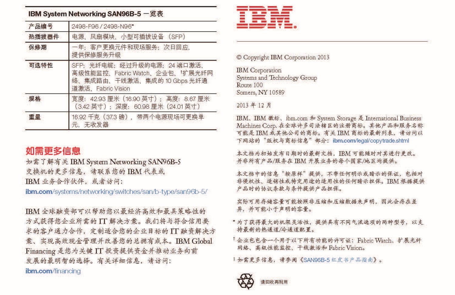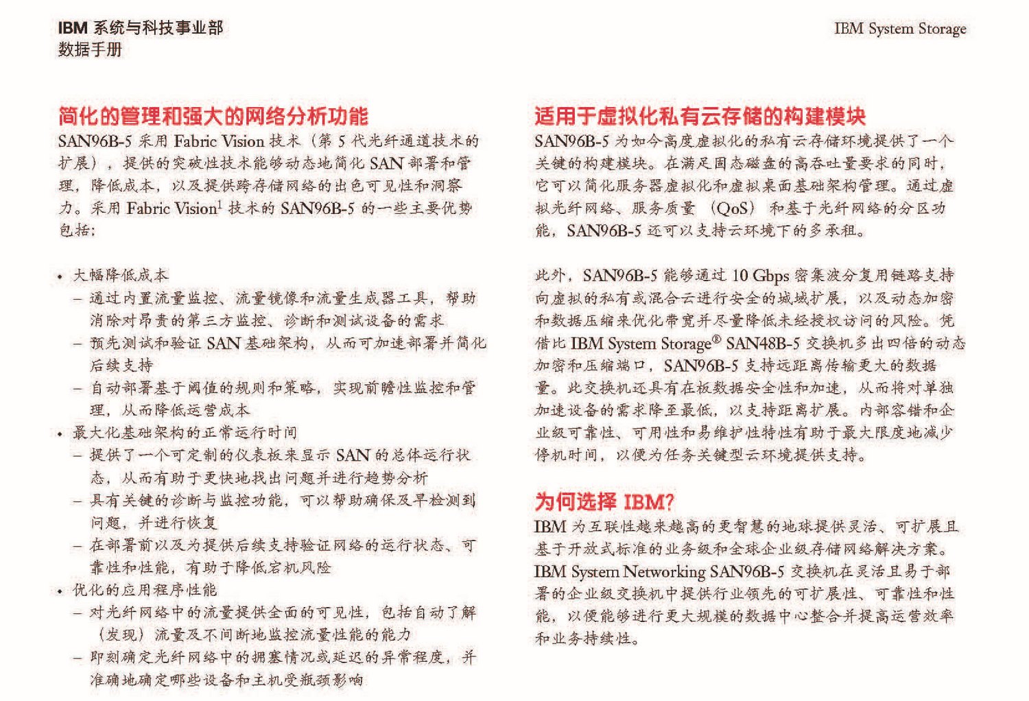 IBM® System Networking SAN96B-5 交换机是适用于不断增长的大型 存储区域网络 (SAN) 基础架构的专门构建的高密度基础构建模块。