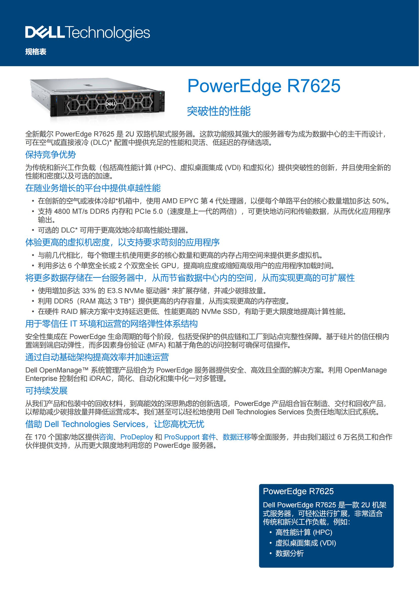 为传统和新兴工作负载(包括高性能计算 (HPC)、虚拟桌面集成 (VDI) 和虚拟化)提供突破性的创新,并且使用全新的性能和密度以及可选的加速。