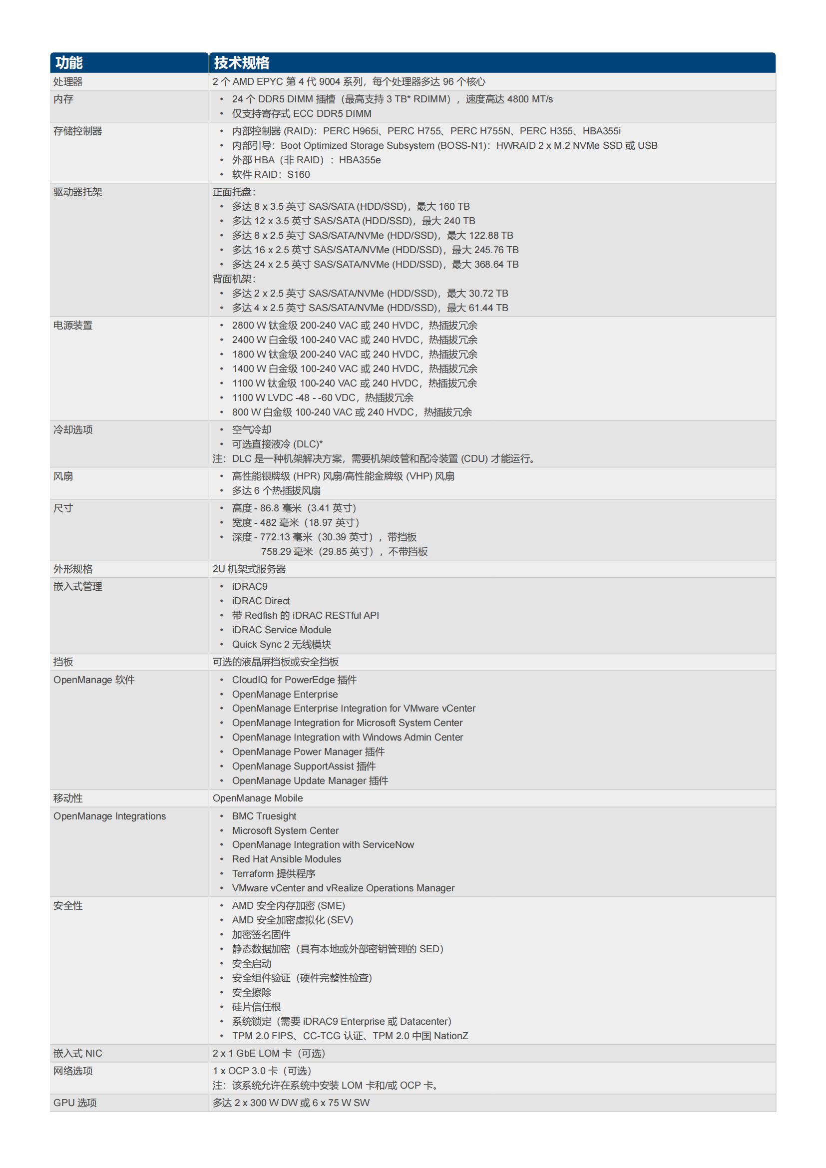 • 在创新的空气或液体冷却*机箱中,使用 AMD EPYC 第 4 代处理器,以便每个单路平台的核心数量增加多达 50%。