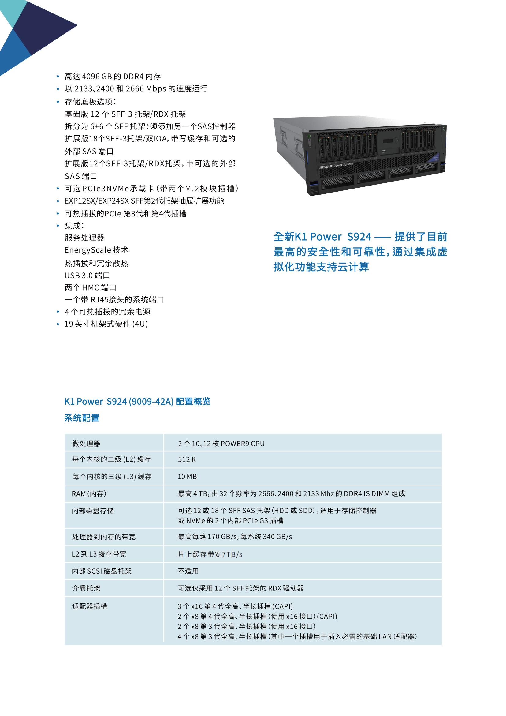 1. K1 Power S924 服务器可轻松融入贵公司的云和认知战略中,为您的关键应用工作负载提供卓越的性价比优势。