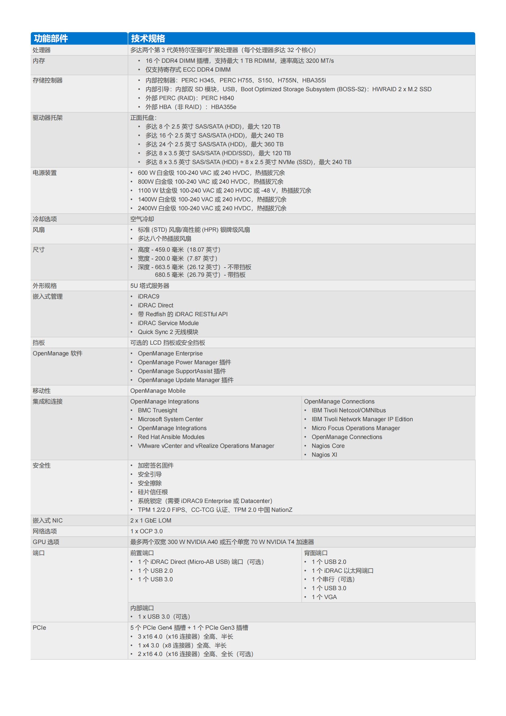 速器支持。PowerEdge T550 提供便于办公的声学、易管理性和可扩展性,可实现发展和绩效提升。PowerEdge T550