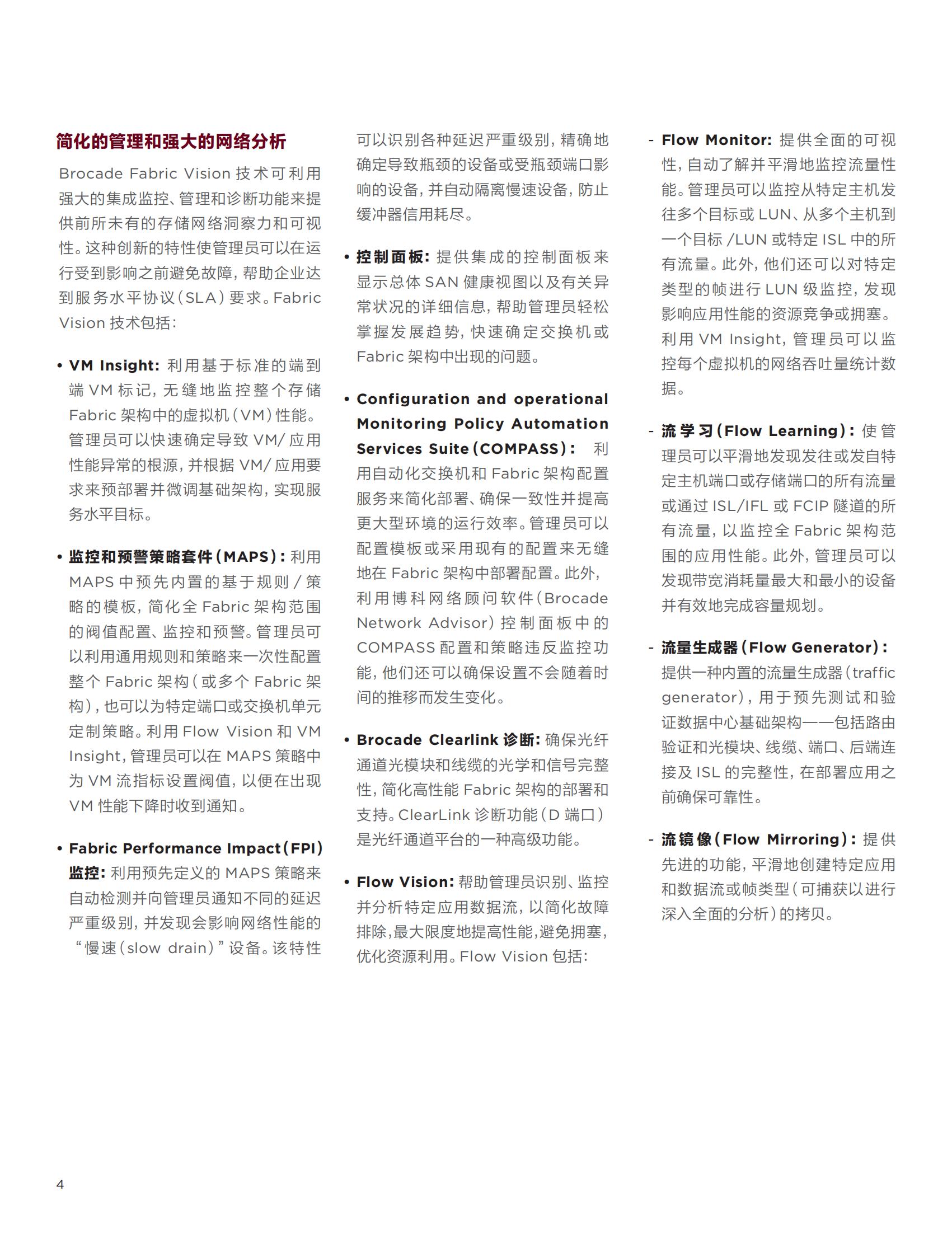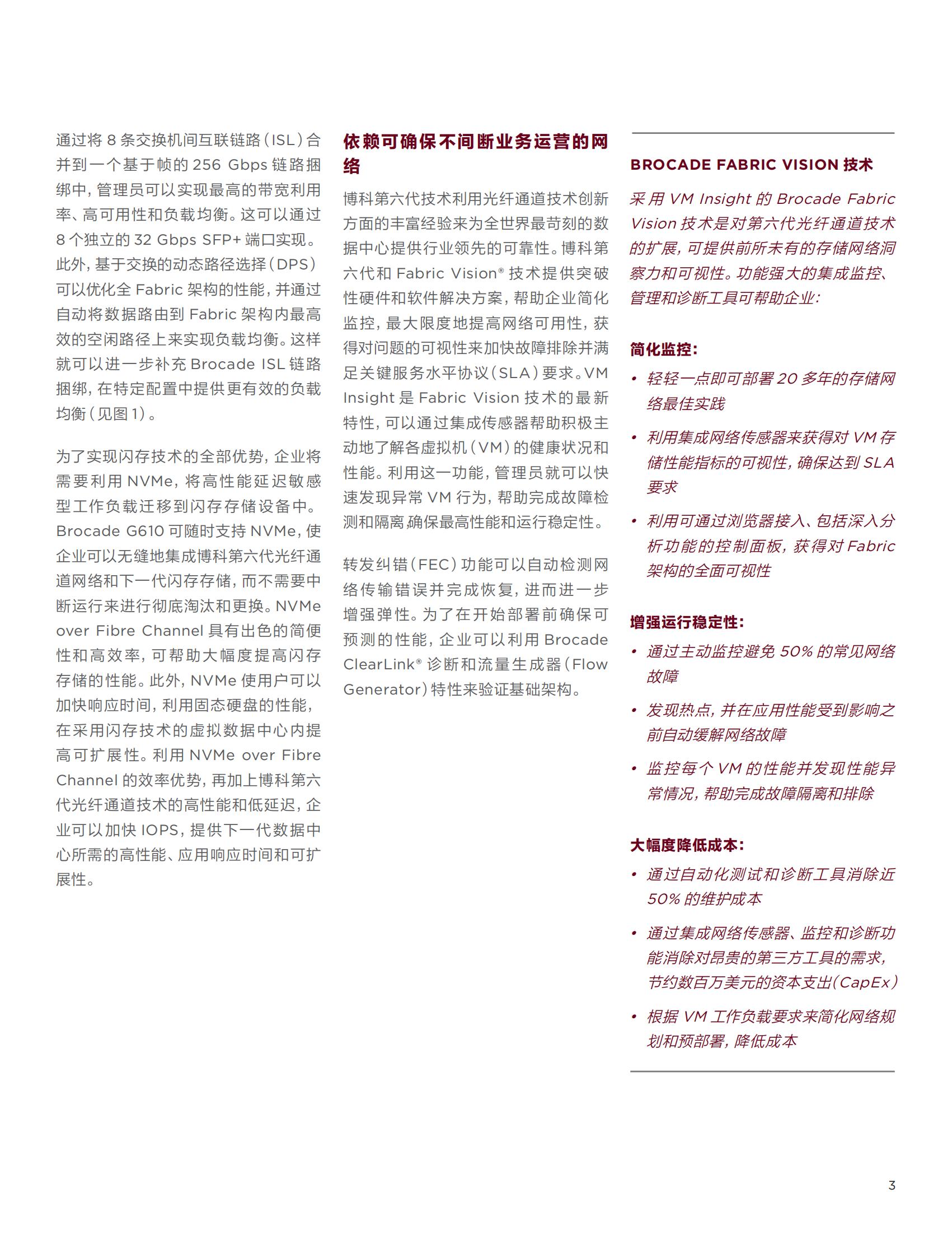 利 用 Brocade Fabric Vision 技术来简化管理,快速排除故障,延长正常运行时间并降低成本